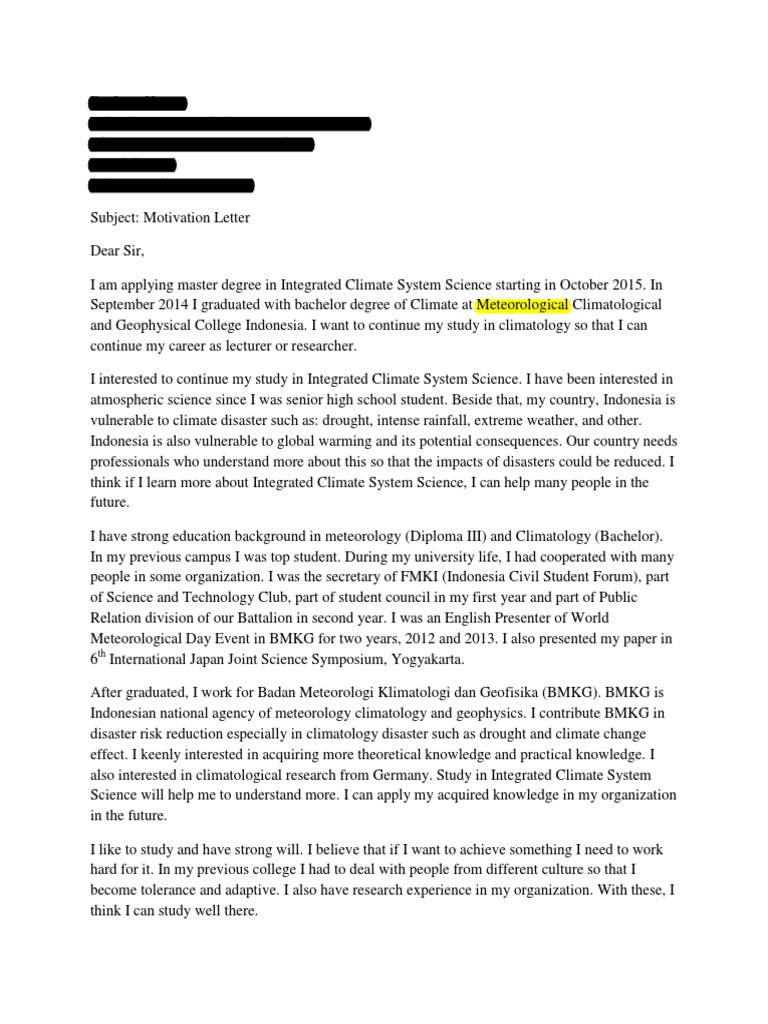 1 Contoh Motivation Letter Climatology Meteorology